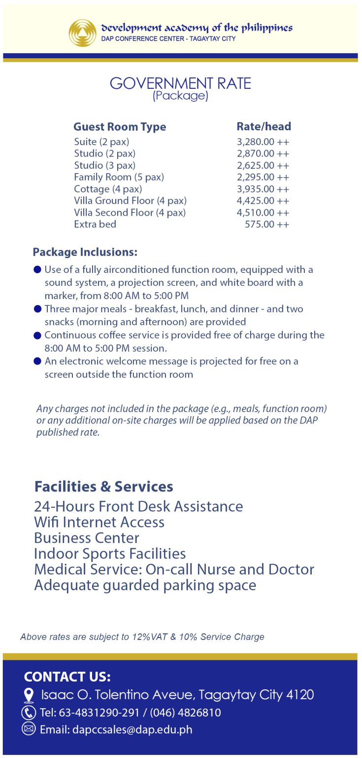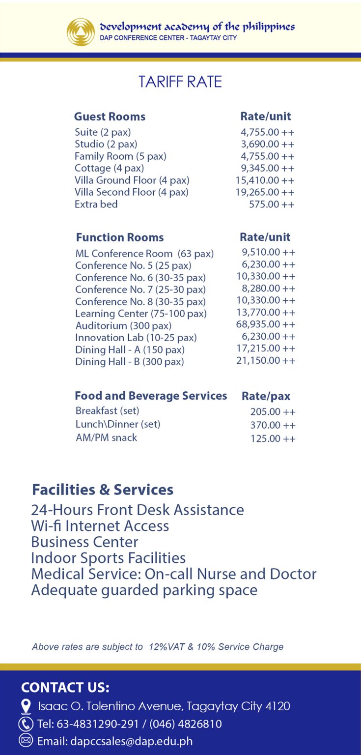 Address: DAPCC Conference Center Tagaytay, Tagaytay-Calamba Road, Barangay Sungay East, Tagaytay City, 4120 Cavite